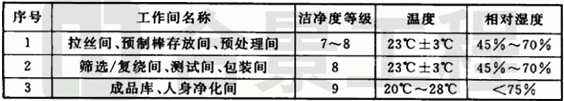 1 光纖廠房的潔凈度等級和溫度、相對濕度參數(shù)應(yīng)符合表4.1.5的規(guī)定。