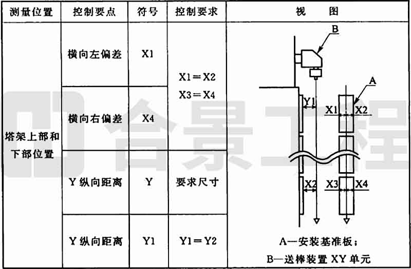 8.8.2 送棒裝置垂直度調(diào)整時(shí)(圖8.8.2),上下兩部位橫向及縱向允許偏差均應(yīng)為±0.5mm。